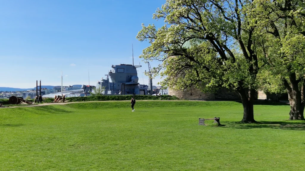 Det ble noen bilder da den tyske fregatten FGS Sachsen Anhalt (F224) lå fortøyd ved Akershus festning i Oslo Havn. Fregatten er i Baden-Württemberg-klassen, som regnes blant de tyngste i verden. Den er 7200 tonn, og har avanserte radarer og våpensystemer. Den lå ved Oslo Cruise Terminal, så cruiseskipet MS Renaissance lå ved Langkaia.